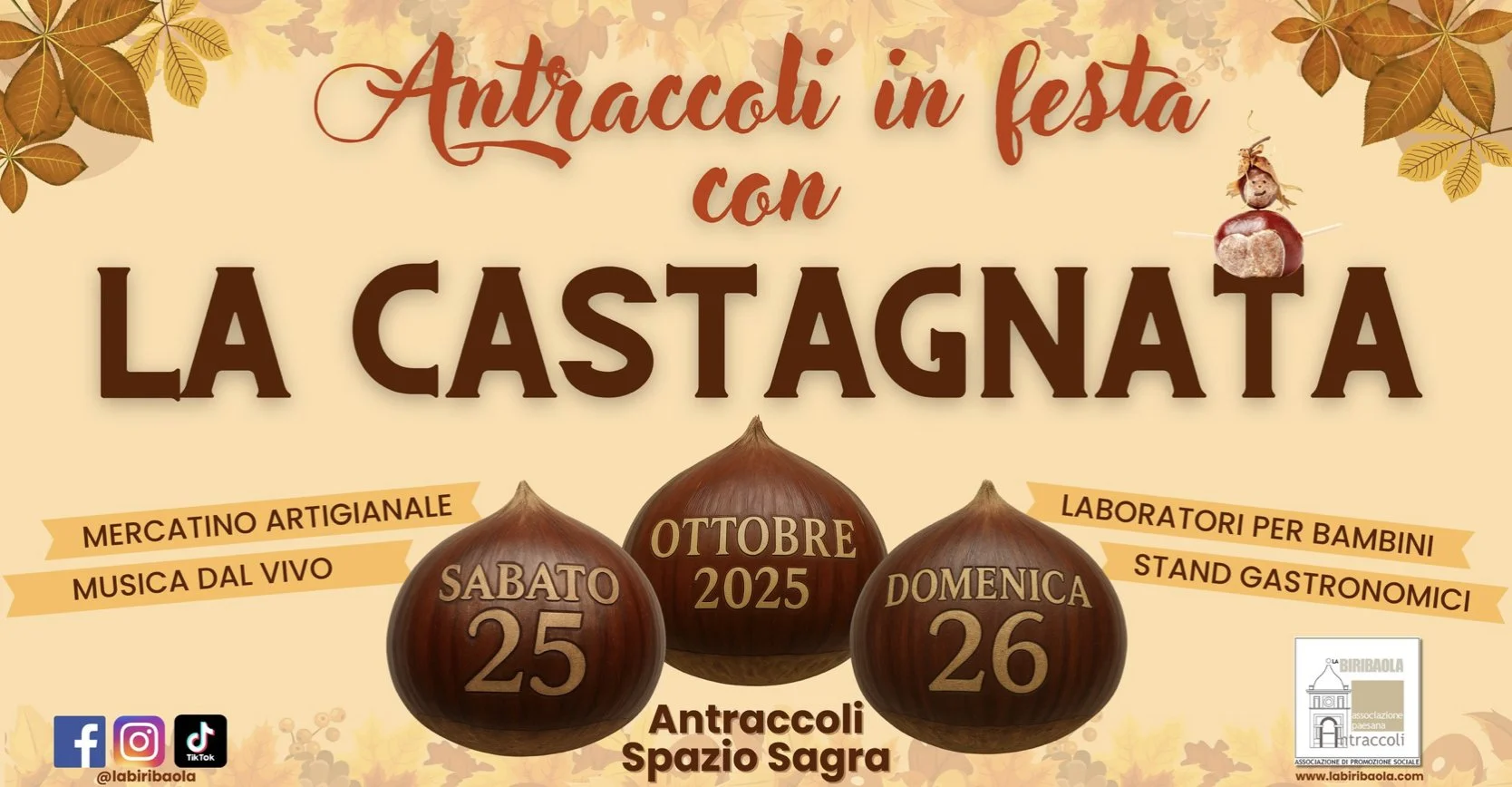 This year, we look forward to seeing you again to enjoy chestnuts in all their many flavors: mondine, necci, castagnaccio... But that's not all! From 12:00 pm, our kitchen awaits you with many other delicacies, such as chestnut tagliatelle with mushrooms and sausage, farinata, fried pasta, sandwiches with hot dogs, sausage, porchetta, or cured meats... and much more!!! Our menu will be online in the coming days! Plus, you'll find a craft market, children's activities, and lots of live music! We look forward to seeing you!!! MORE INFO