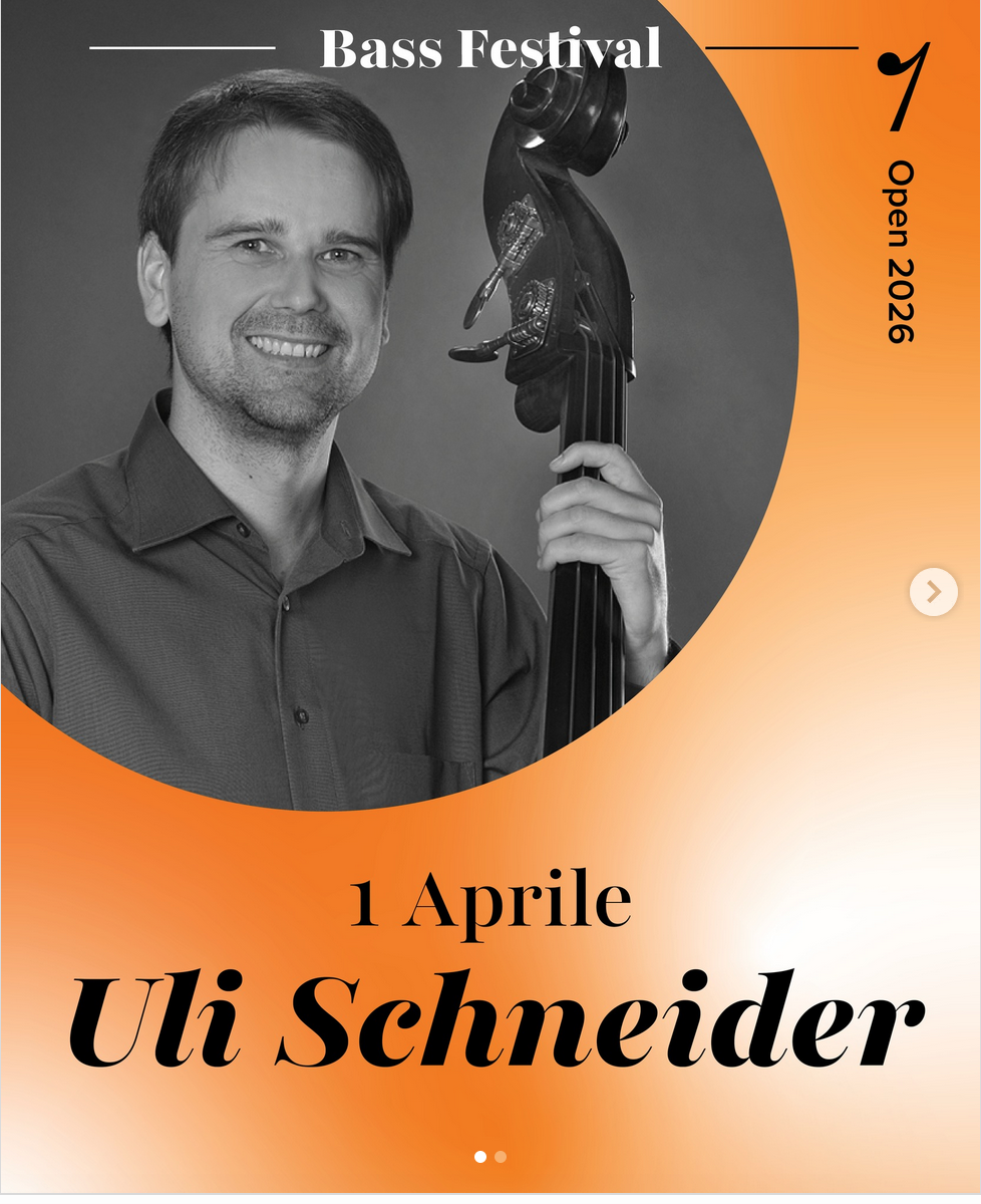 Uli Schneider, accompanied on piano by Yuka Schneider, brings a program to the Auditorium of the Boccherini Conservatory that spans the centuries without ever losing sight of the present: the architecture of Bach, the visionary writing of Tetsuo Kawakami, and the contemporary voice of David Anderson, all told through the strings of the double bass.