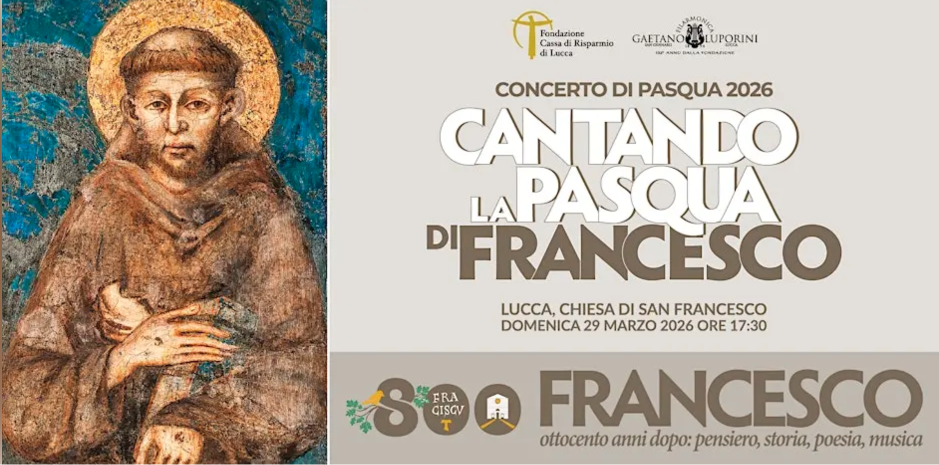The concert, now in its tenth edition, becomes for this year an essential card of the mosaic of events of the program “Francesco. Eight hundred years later: thought, history, poetry, music”, which – as recalled by the president of the Fondazione Cassa di Risparmio di Lucca, Massimo Marsili – “puts at the center the message and the cultural and spiritual heritage of man and saint in history, literature, poetry, music, cinema and philosophy”.