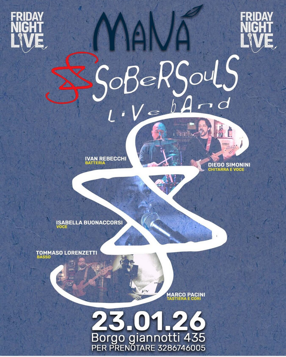 Mana restaurant in Borgo Giannotti live music schedule for January is here with concerts every Friday evening.This Friday Sober Soul Book your table for dinner and don't miss your favourite band ❤️ ☎️ 3286746005