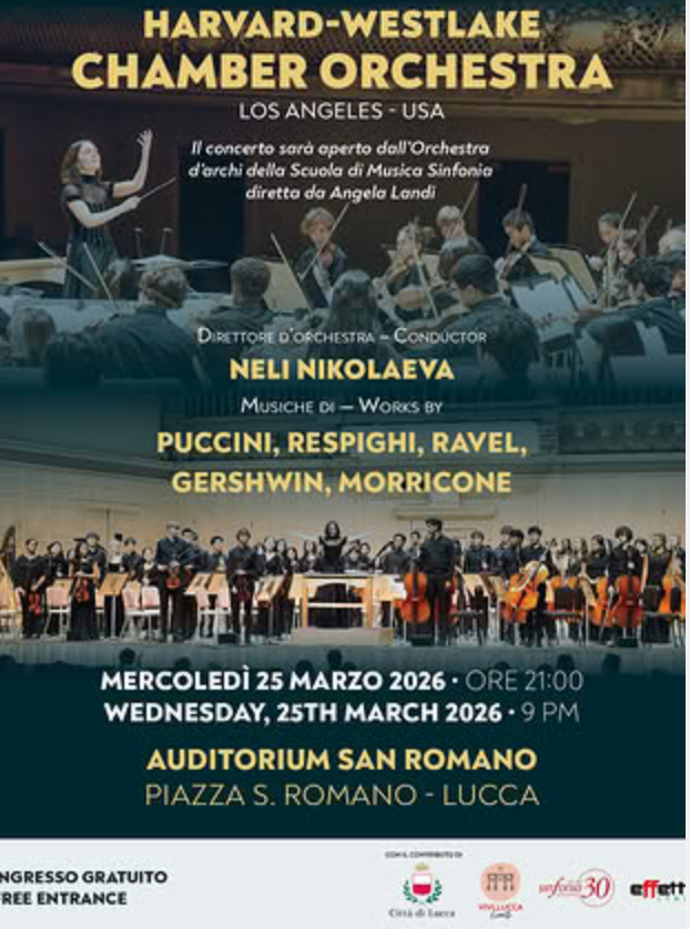 The Harvard-Westlake Chamber Orchestra, an orchestra composed of the most advanced students from the Harvard-Westlake School of Music in Los Angeles, will be in Lucca for an event of Lucca Music Dialogue – International Musical Encounters, a program promoted by the City of Lucca as part of the Vivi Lucca 2026 project.