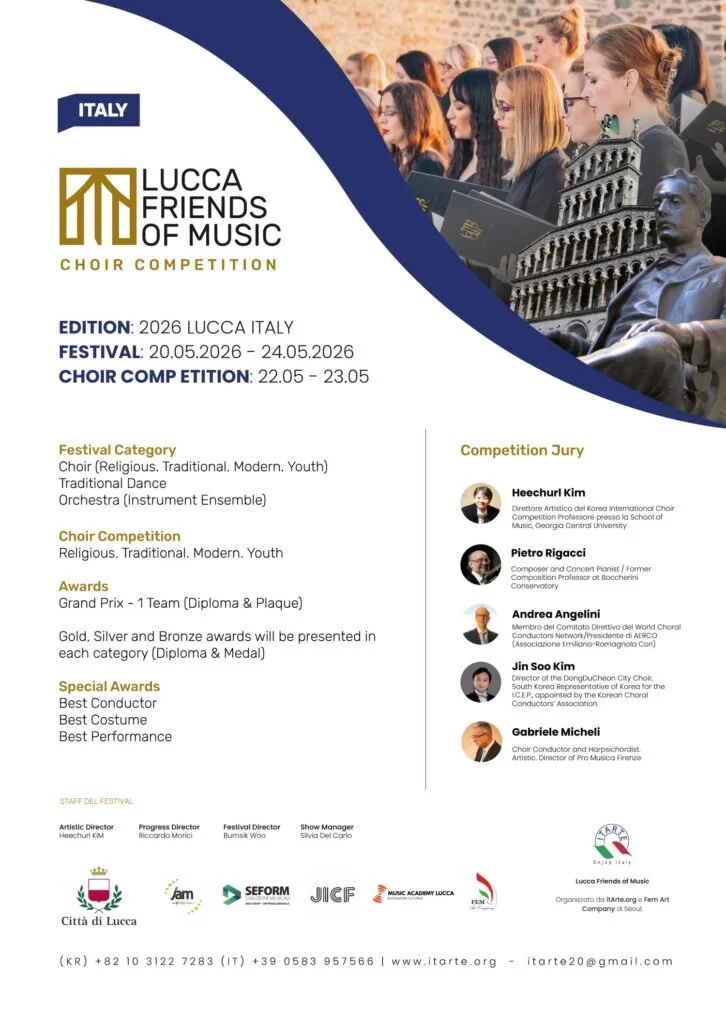 Lucca Friends of Music is an internationally renowned musical event, born from the collaboration between Jam Academy of Lucca and FEM ART Company of Seoul, which promotes the encounter between classical and traditional Italian and Korean music.