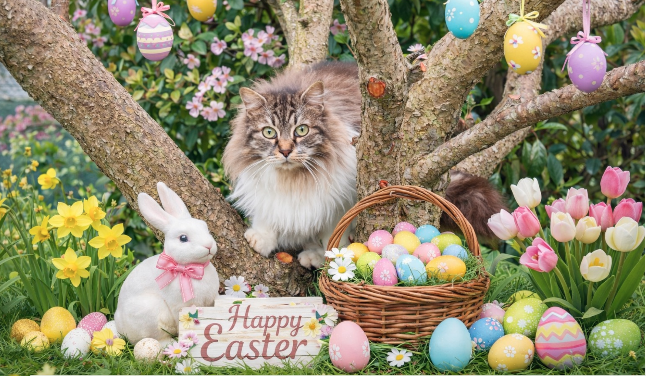 You can enjoy the large garden, the covered area, the buffet with open bar, the market where you'll also find delicious doves and Easter eggs, fun and cuddles for everyone.