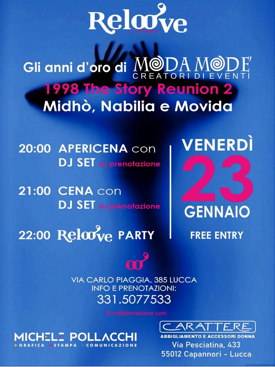 Reloo Cafe is back with their Reloove Party apericena with a DJ set from 8pm. Booking for dinner call 331 5077533 FREE ENTRY