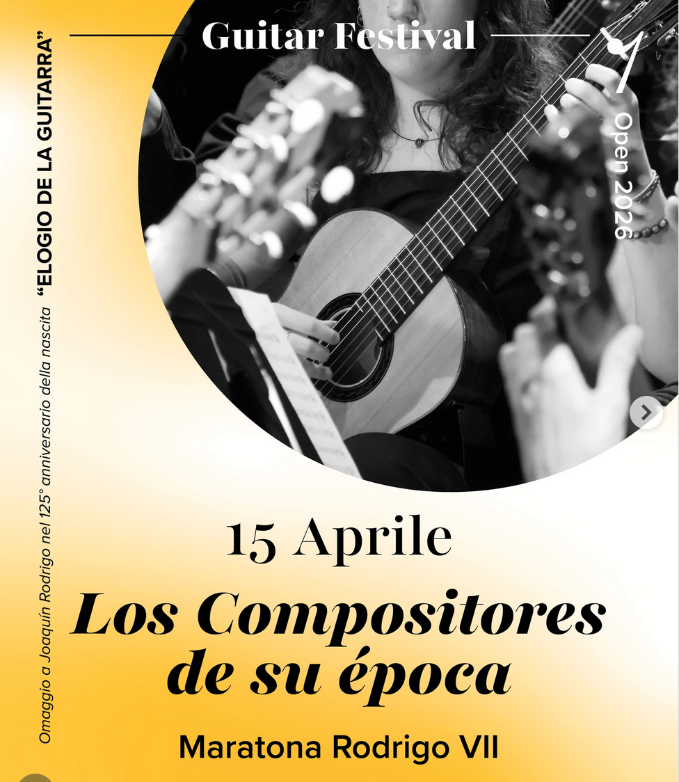 Rodrigo was not alone: around him was an entire generation of composers who were redefining the sound of the guitar.Students from the Boccherini Conservatory bring the marathon to a close with ‘Los Compositores de su época’: music by López-Chavarri and José, recounting the world that surrounded Rodrigo and fuelled his creativity.