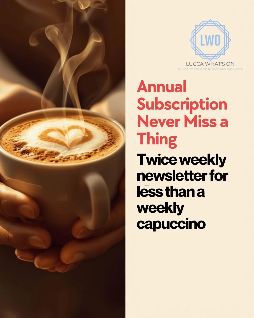 Lucca has a plethora of events all year round and compiling them is a mammoth task. We help you discover what’s on so you can plan your social activities rather than trawl through umpteen websites trying to make head or tail of what is happening. We do this work for you and spend many hours a week researching, compiling and getting them up here for all to see.